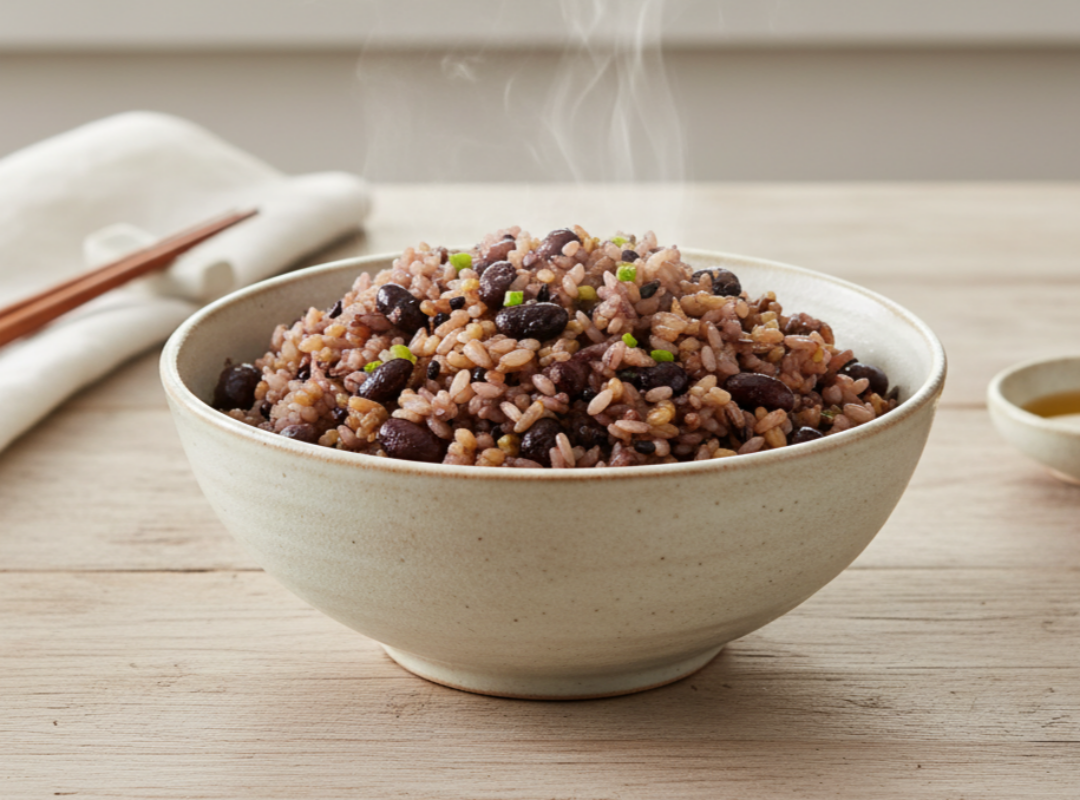 현미의 고소함과 콩의 구수함이 함께 퍼지는 순간,