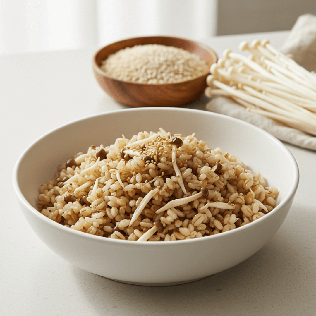 - 보리 + 팽이 + 두부 → 부드럽고 단백질 풍부한 한 끼
