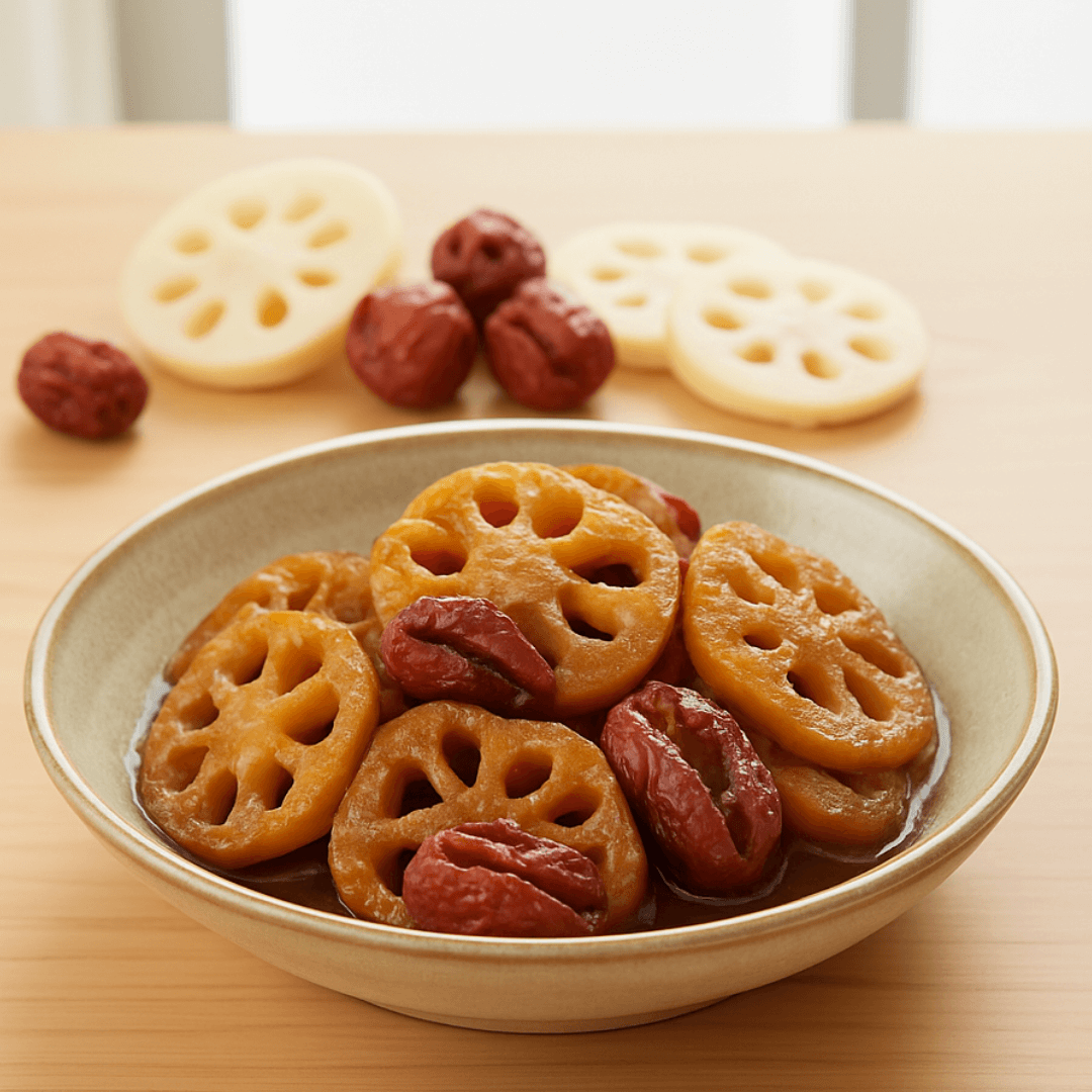 음식궁합(식이섬유+천연당분)ㅣ연근과 대추의 음식 궁합 — 뿌리의 안정, 달콤한 회복