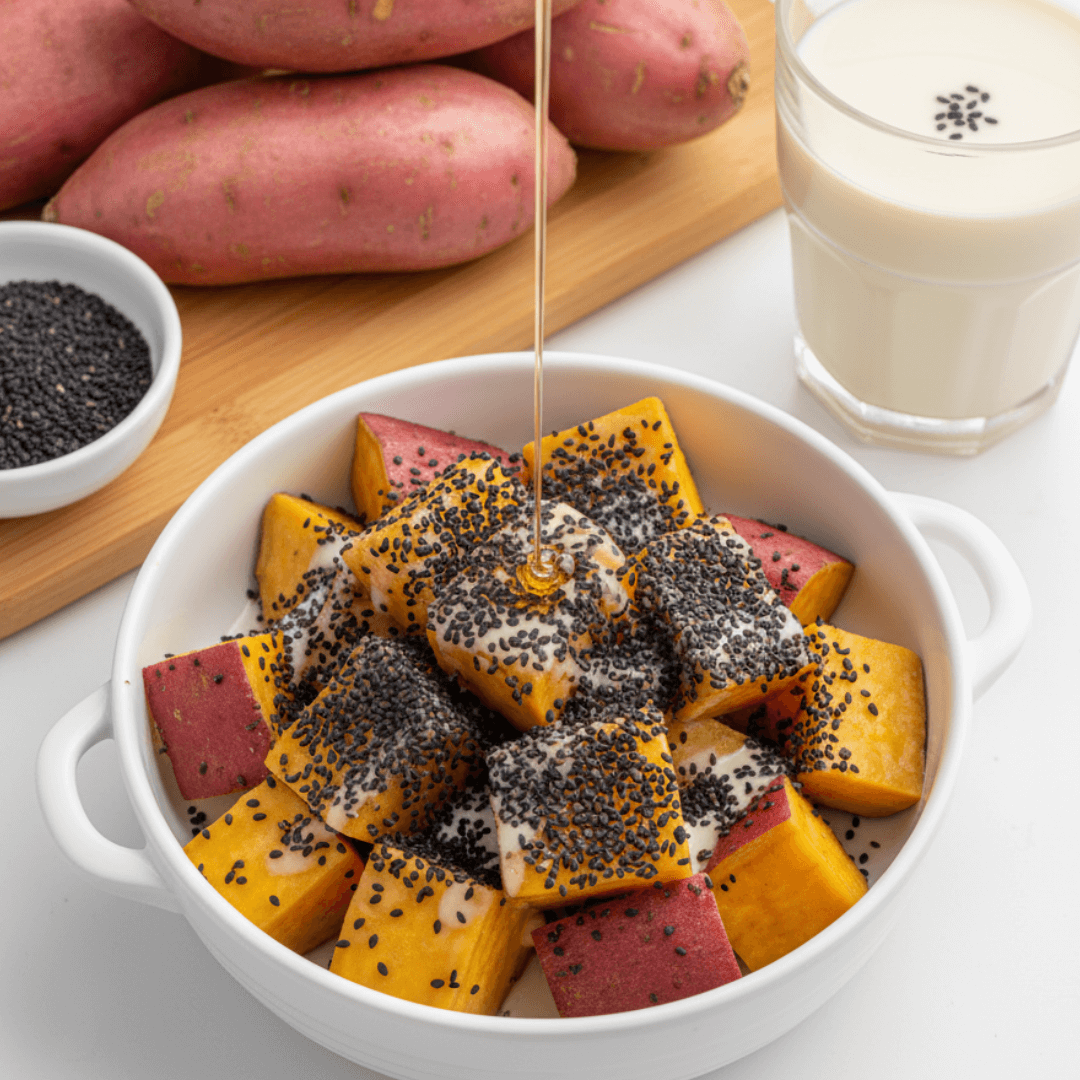 음식궁합(천연당분+불포화지방산)ㅣ고구마와 흑임자의 음식 궁합 — 포근한 단맛 속에 깃든 진한 고소함의 위로
